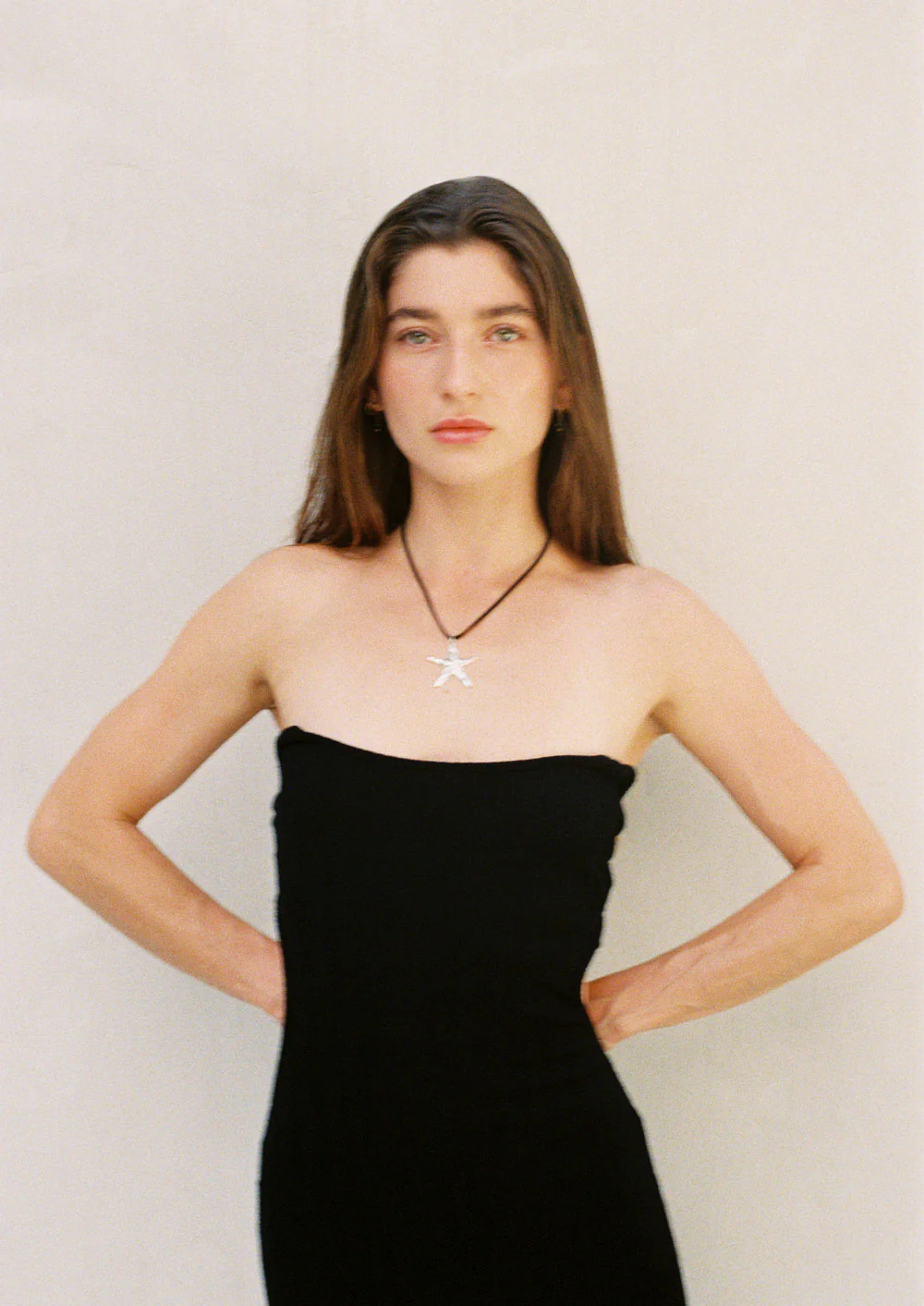 Silver Antique Starfish pendant on flat faux suede cord.