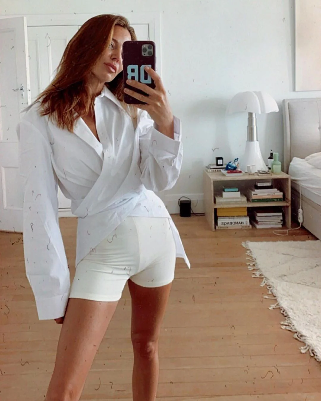 A cotton oversized button-up shirt with a wrap feature. Cross the two front parts of the shirt to wrap around the waist and secure with the last button at the back. Option to wear the shirt undone over our Ribbed Bike Short or tucked into the waist of your favourite denim jeans.